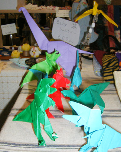 いつも付いてくる甥っ子が急に「折り紙売るぞ!」と恐竜折り紙を製作していた。