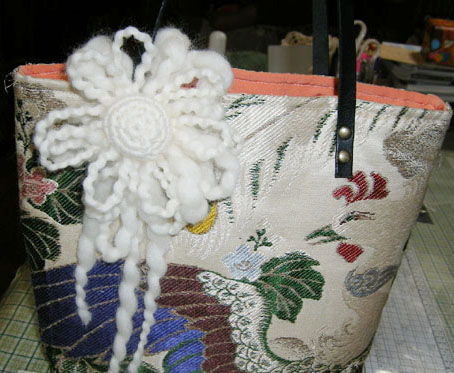 着物リメイク小物とビーズアクセサリーと異様な組み合わせで、