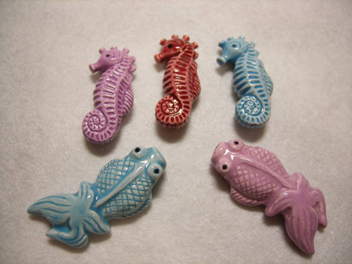 画像左側は、ペルー産焼き物ビーズで去年はドラゴンを柄をget
